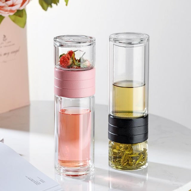 Fabriquée dans un style moderne et simple, cette Bouteille Théière se compose de contenant, l'un pour mettre le thé ou une plante, l'autre sert à mettre de l'eau et en renversant la théière mobile l'eau chaude entre en contact avec le thé à infuser tout comme la théière nomade qwetch en verre.